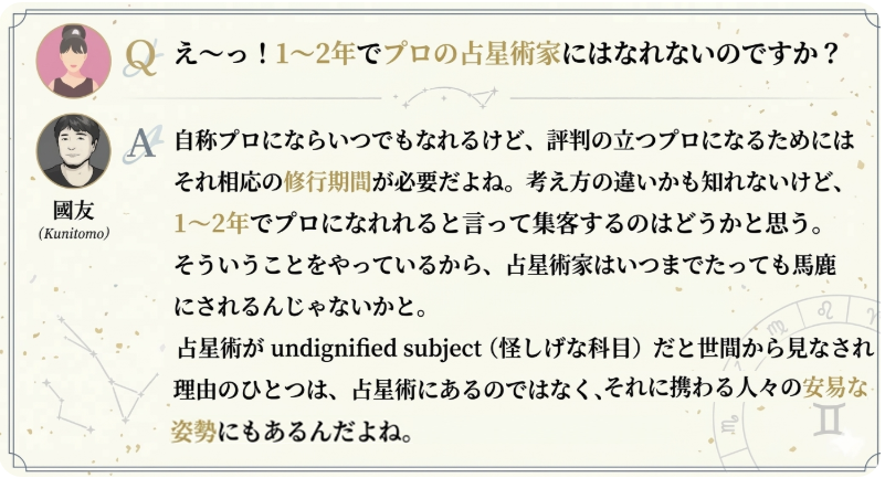 一緒に占星術を学んでいる友人らがおもに鑑定していますが鑑定のレベルは相当高いですね。