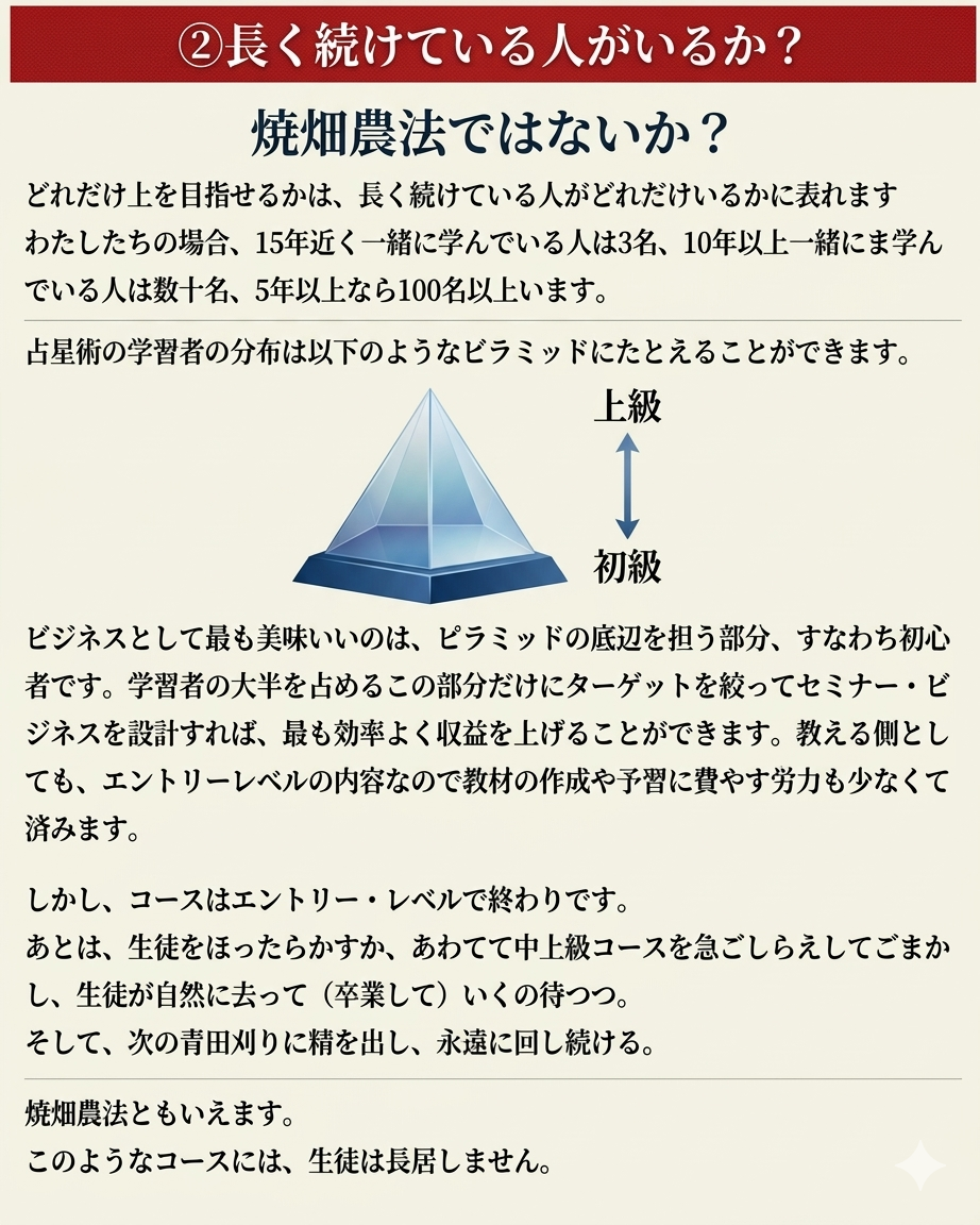 Q6:上のレベルのセミナーやコースの受講生を一般公募しないのはなぜでしょうか?