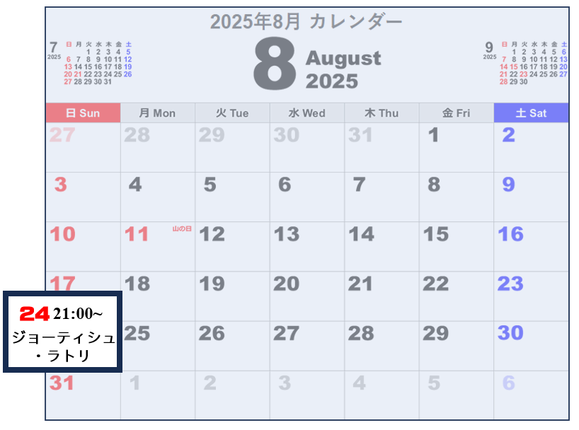 日時:8月24日午後9時~