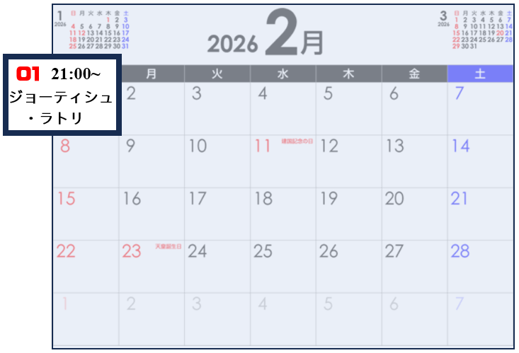 日時:2月1日午後9時~