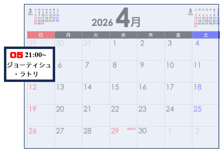 日時:4月5日午後9時~
