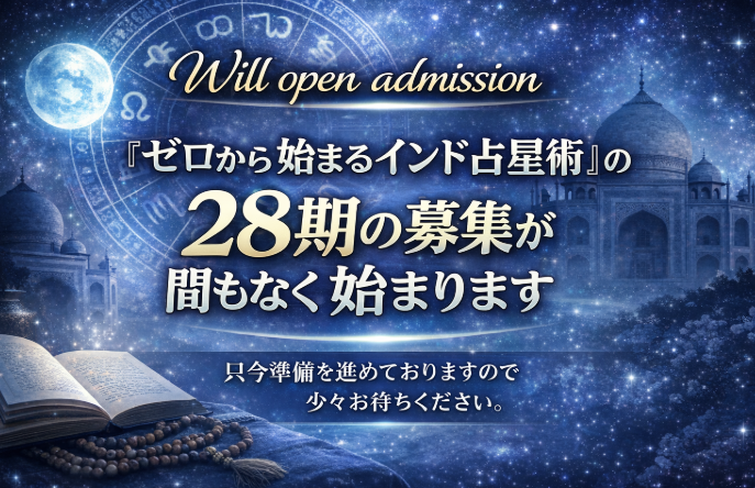 Q&A・考え方お知らせテクニック動画感想文化・社会日常時事ネタ 鑑定 28期の募集が間もなく始まります 清水俊介 2026年3月8日 / 2026年3月9日 『ゼロから始まるインド占星術』の28期の募集が間もなく始まります。 現在準備中です。 もうしばらくお待ちください。 ジョーティシュ・サンクチュアリー │ ヴリンダーヴァン I agree to have my personal information transfered to MailChimp ( more information ) 正統なインド占星術を学びたい方のための最新のブログ記事をお送りします。世界的なインド占星術の泰斗・KNラオらの翻訳書籍やリサーチ動向の最新情報や学習上のヒントが満載です。左のフォームにお名前(あるいはニックネーム)とEメールアドレスを入力して、オレンジ色のボタン「更新情報を受け取る」を押してください。メールアドレスは第三者に譲渡されることは決してありません。